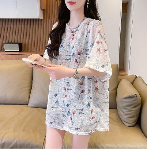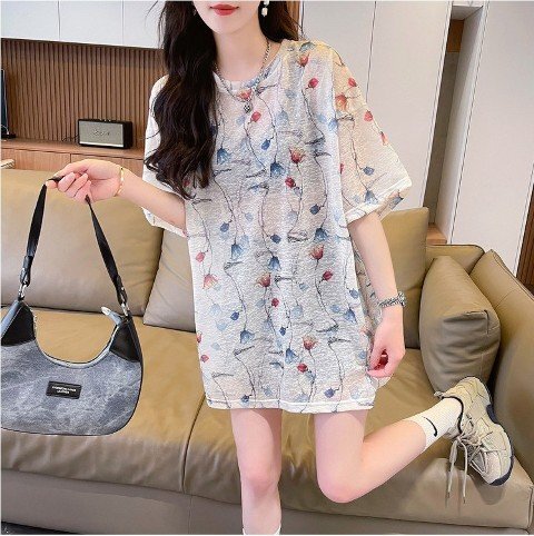 トップス ブラウス 半袖 花柄 シンプル 透け感 カジュアル お出かけ レディース 2XL ホワイト 收藏