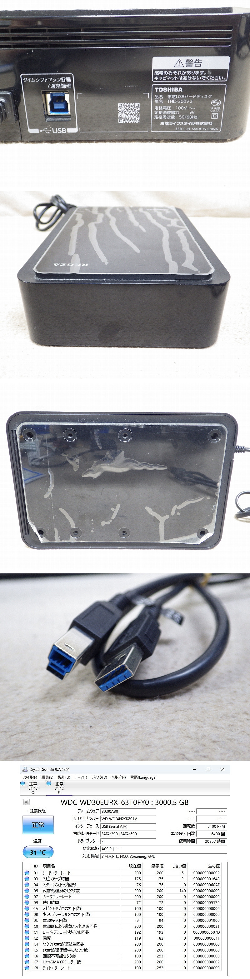 Kネま2039 東芝/TOSHIBA REGZA USB3.0接続対応 外付けHDD 3TB THD-300V2 パソコン周辺機器 ハードディスク テレビ録画 收藏