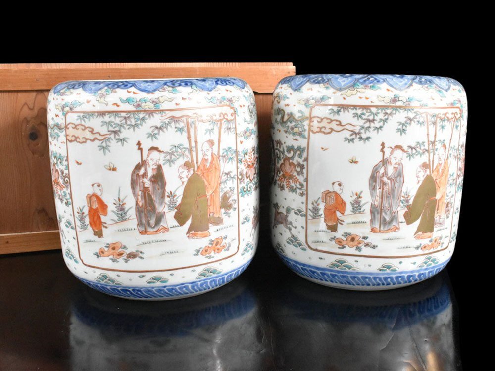 | 商品名 | 【雲】某名家収蔵品 古伊万里 色絵金彩雲龍麒麟鳳凰賢人唐子紋火鉢 一対 直径21.5cm 箱付 古美術品(瓶掛)AJ1862 LTkiuy |