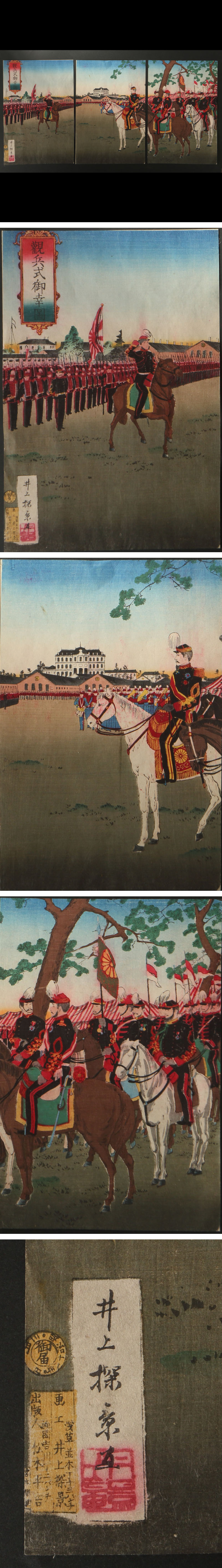 【版画】委託HK◇井上安治 観兵式御幸 浮世絵版画3枚組(美術 版画 絵画 浮世絵 大日本帝国陸軍 明治天皇 明治時代 皇族浮世絵 皇室 ) 收藏