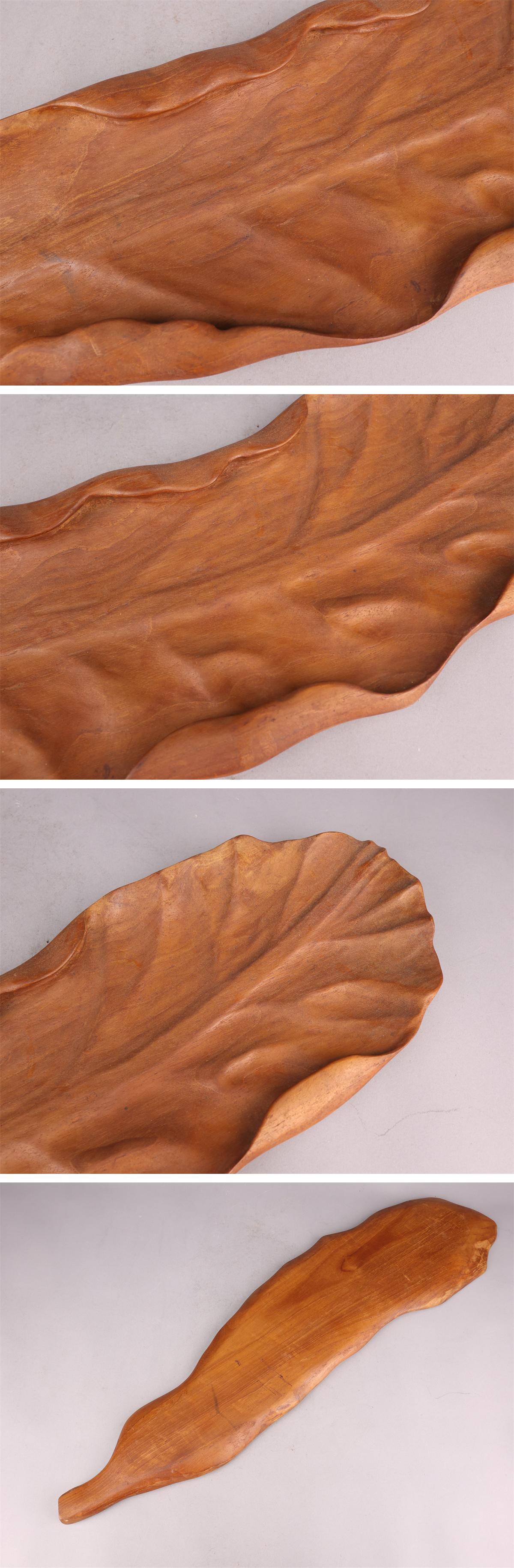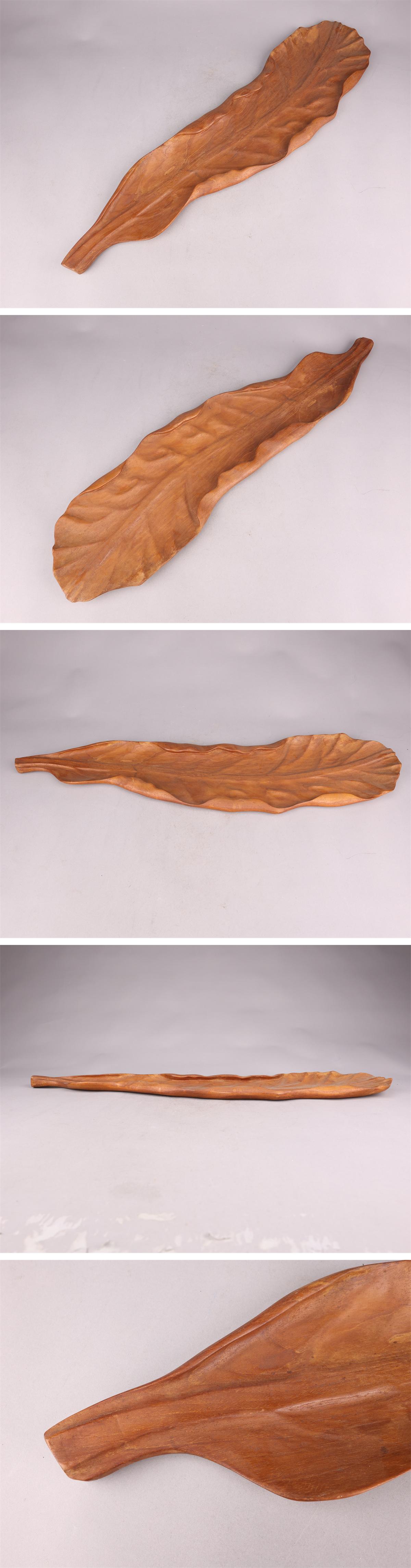 【志】A979芭蕉盆 木製 大型葉盆 手彫り 茶道具 煎茶道具 長さ77cm 收藏