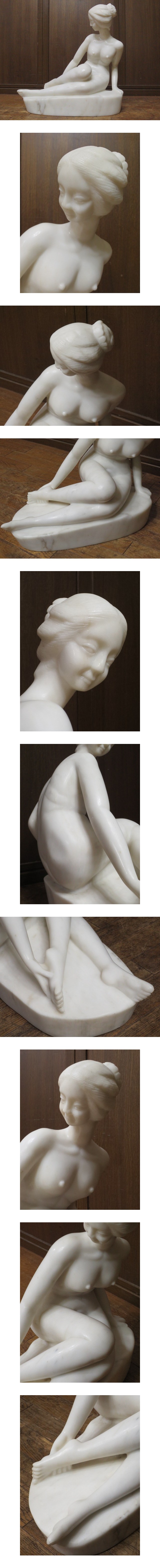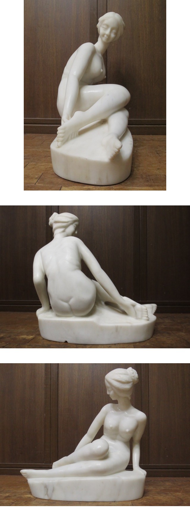 逸品 美術品 大理石 彫刻【座せる裸婦全身像】W42㎝ H41㎝ 重さ 約20㎏/裸婦像/美人像/ギリシャ神話 ローマ神話 ロココ イタリア フランス 收藏