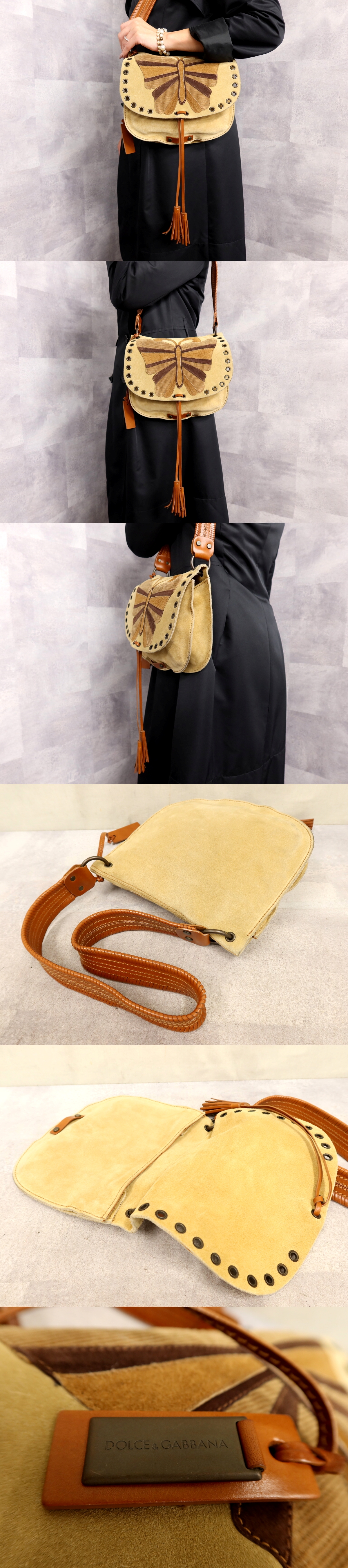 ●超美品●ドルチェ&ガッバーナ●タッセル●バタフライ●スエード カーフ レザー 本革●ショルダー バッグ●ベージュ ブラウン●Js62476 收藏