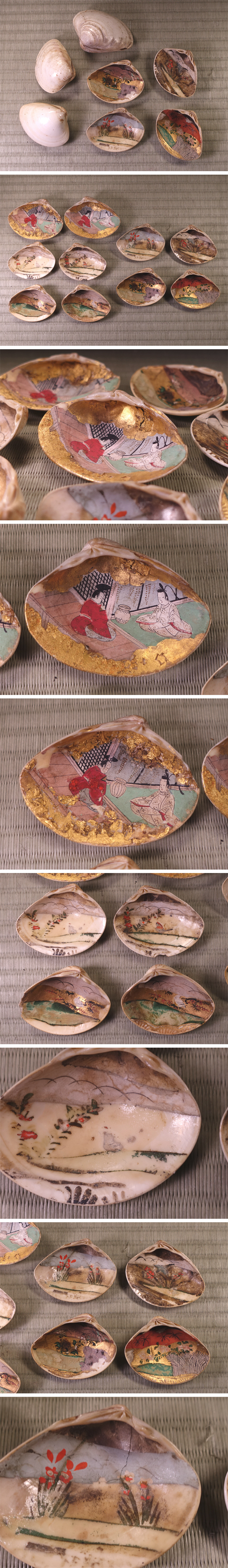 ∇花∇大名雛道具 江戸時代 肉筆の源氏絵など雅な貝合わせ十枚 武家婚礼調度 有職玩具 收藏