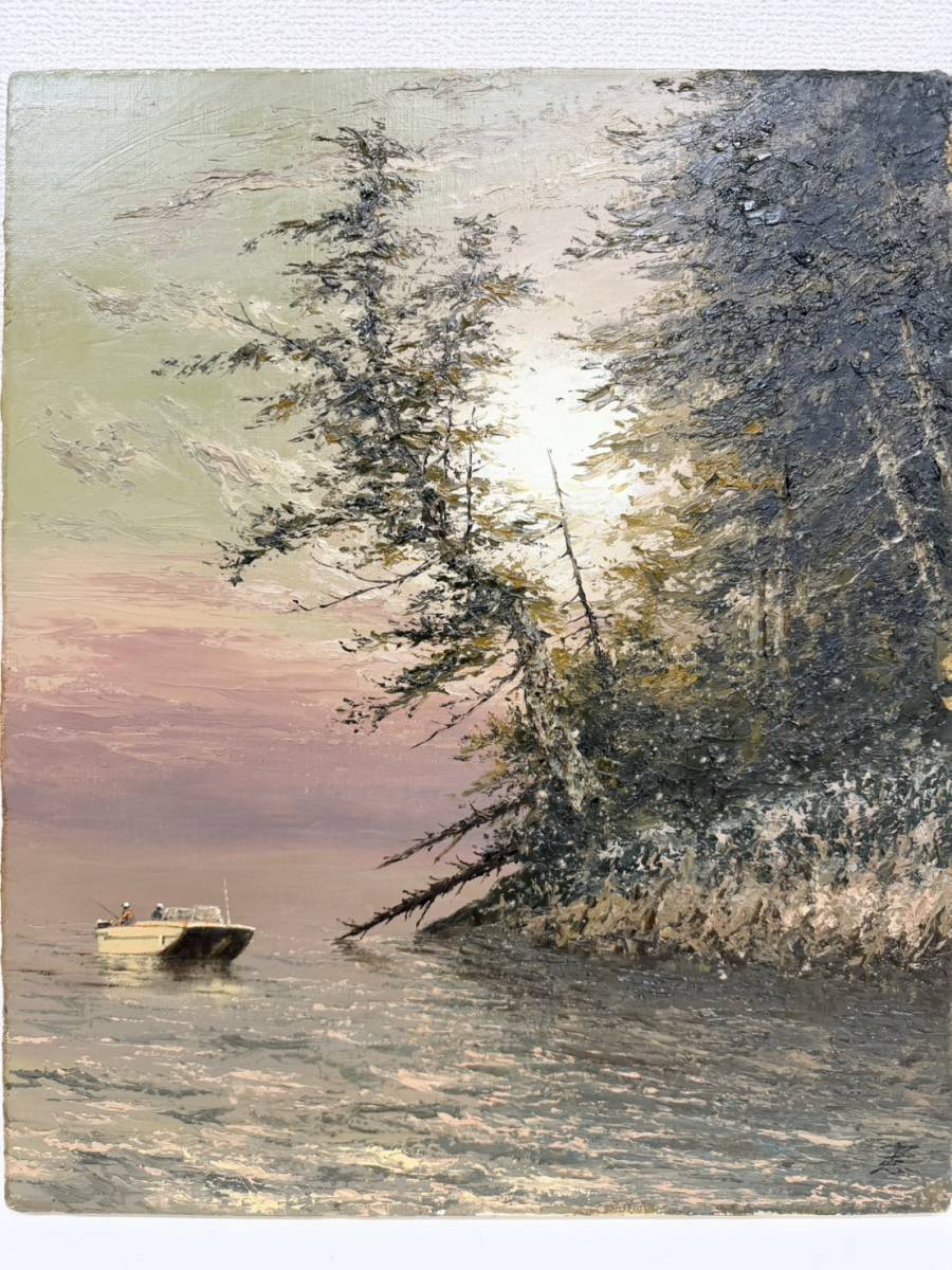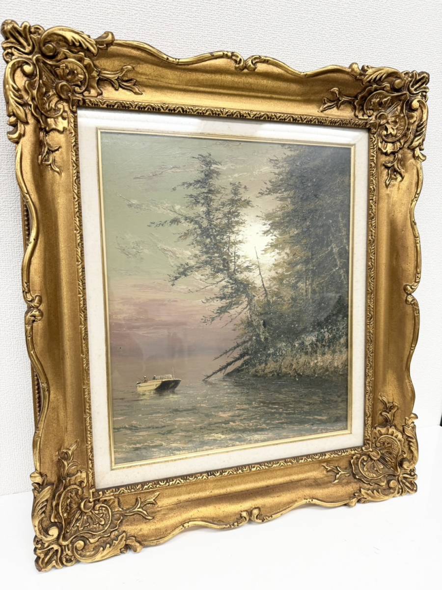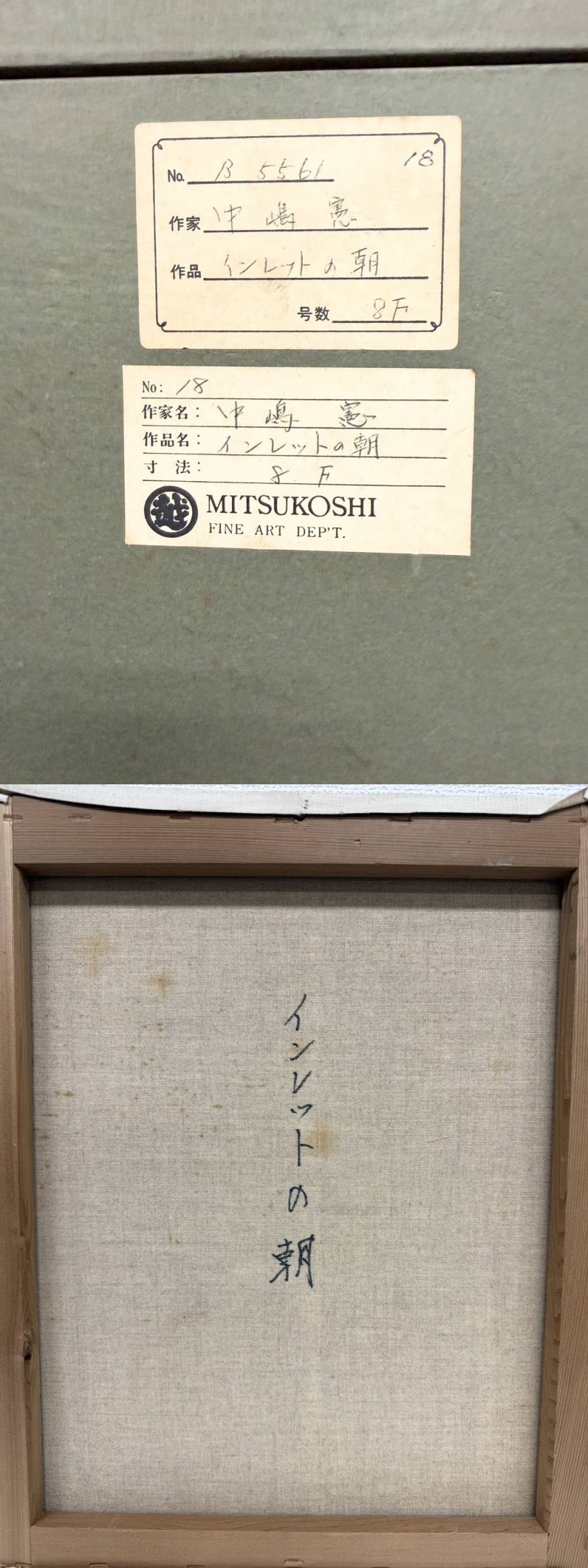 ●【真作保証】中嶋憲 インレットの朝 8号 油彩 油絵 風景画 額装 額付き 美術品 アート インテリア