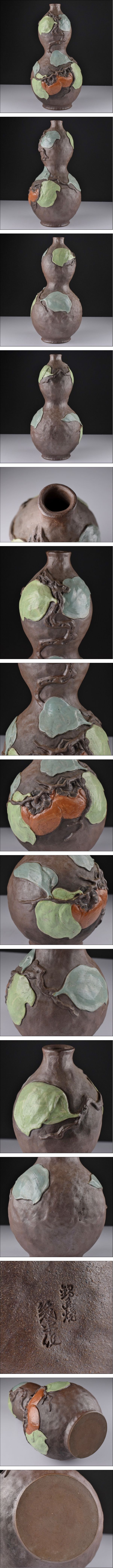 | 品 名:鍋島焼 幾平作 盛上彩釉 柿彫瓢型 花瓶 高さ30㎝ 寸 法:高さ 30㎝ 直径 15.5㎝ 総重量:1841g 状 態:傷など無く良品でございます。 | |||