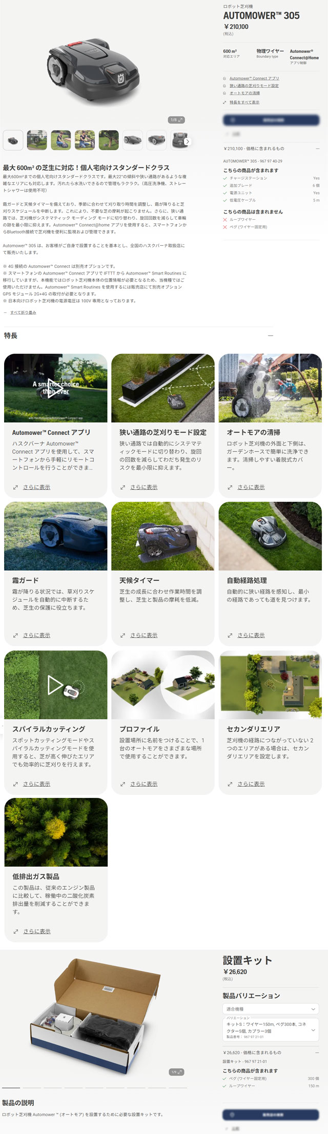 | メーカー・型式 | ハスクバーナ / 本体 : AUTOMOWER305 (967 97 40-29) 設置キット : キットS (967 97 21-01) |