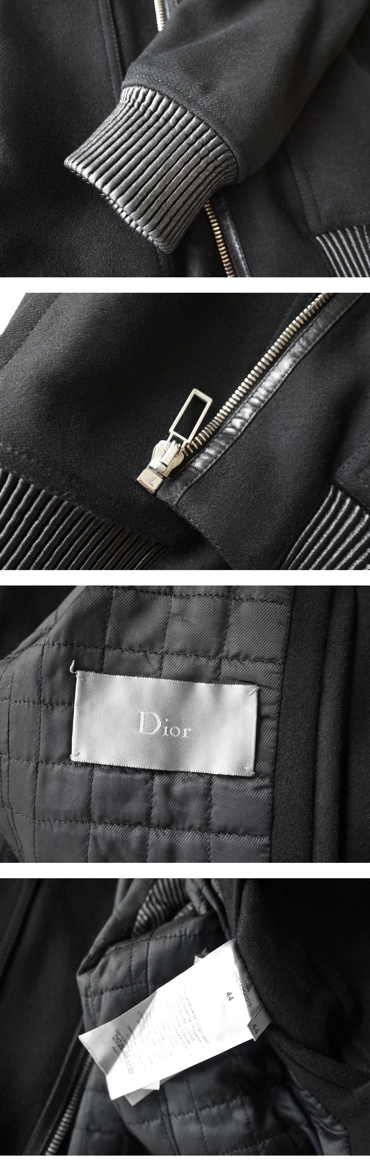 当時のディオールオムを象徴する堅牢な質感のメルトンウールは、適度なハリ感と厚みがありながら軽快な着心地を実現し、デザイン性と機能性共に兼ねそろえたまさに最高峰のマテリアルです。リブ部分と襟周りにはリアルラムレザーを贅沢に使用しております。