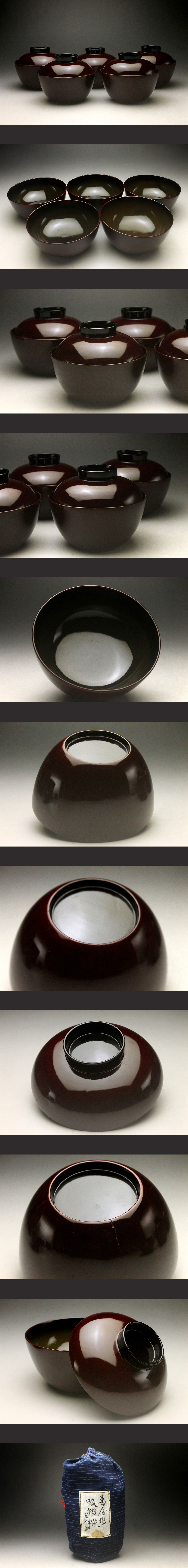 【余韻】 時代物 天然木製 溜塗 葛屋形 吸物椀(5客)★懐石道具 料亭<同梱可> 收藏