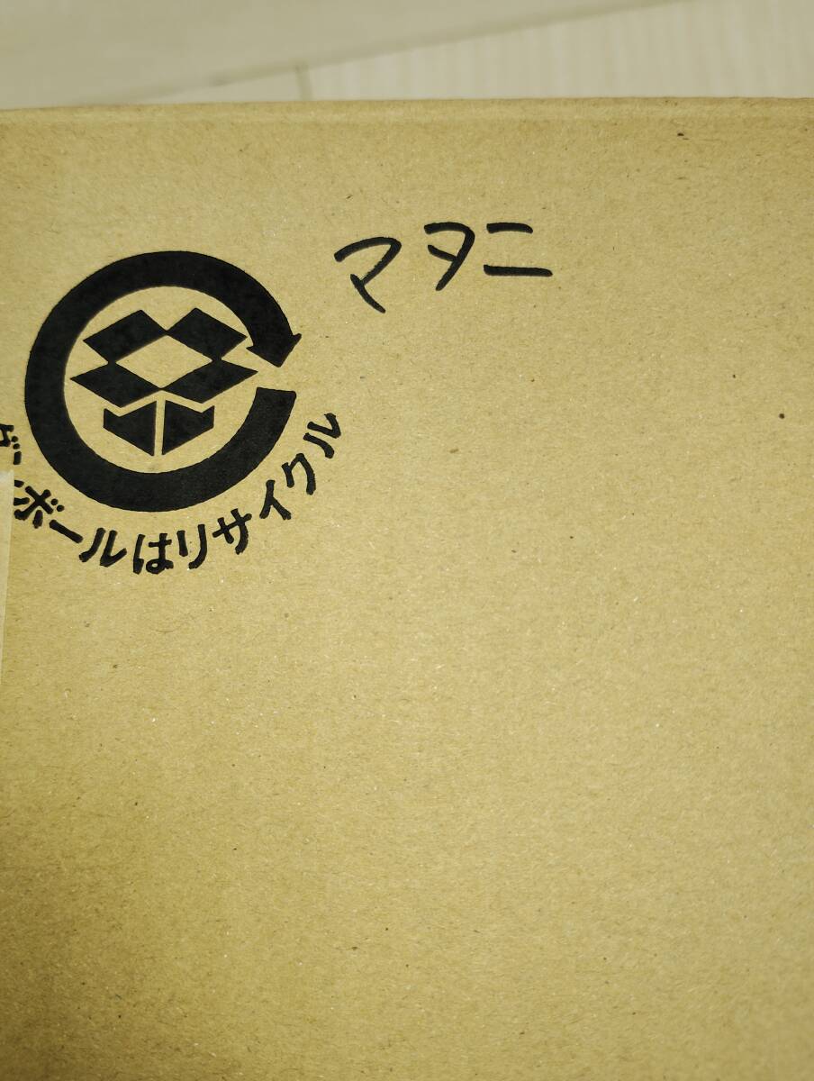 梱包用の段ボールは、リサイクルのため画像のように落書きが掛かれています。