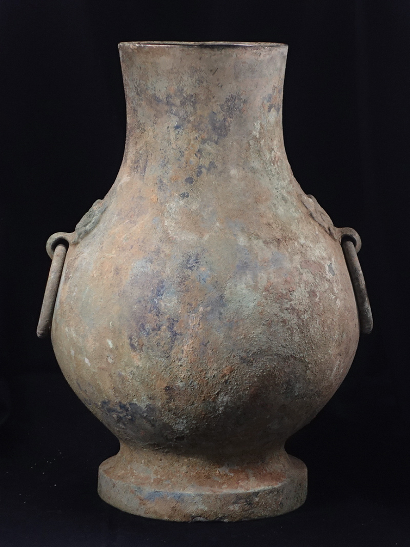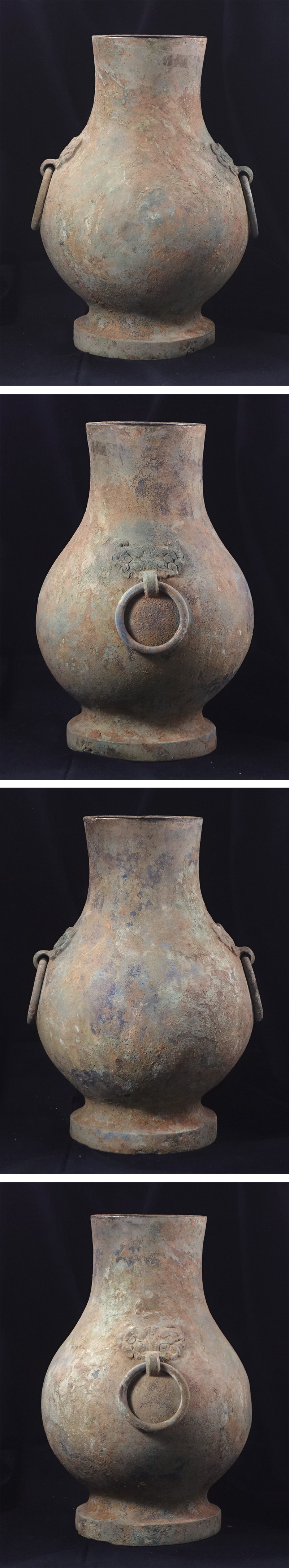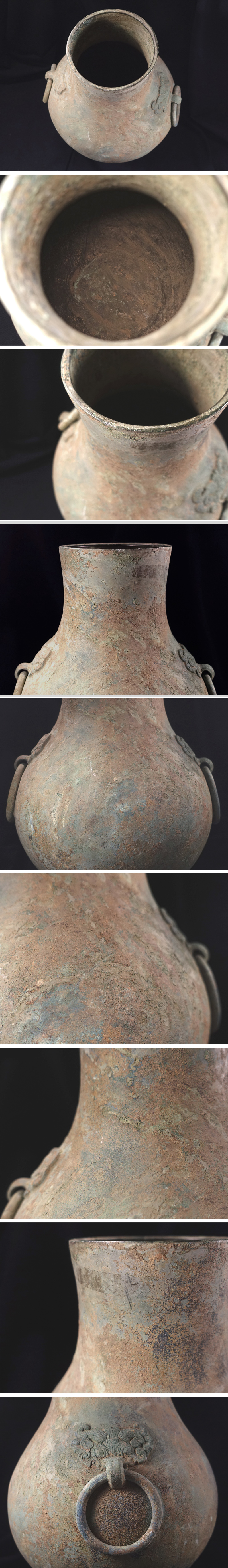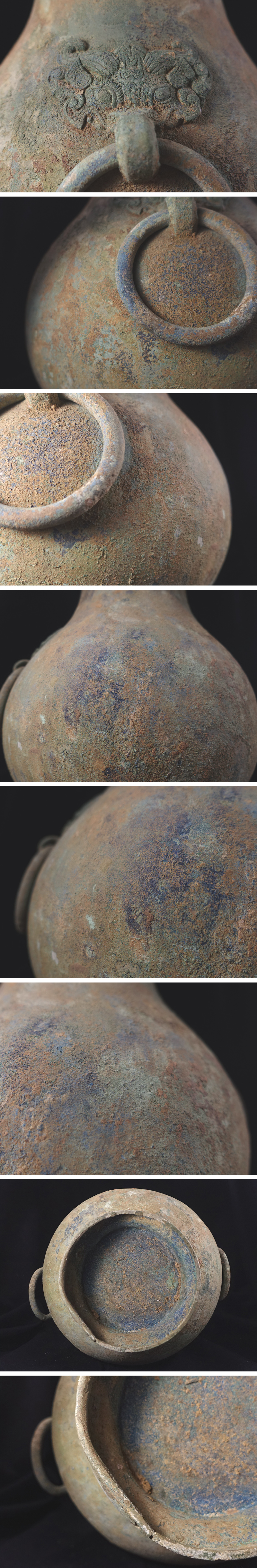 ∇花∇中国高古銅器 殷晩期~西周時代 青銅饕餮文双耳壷(コ) 古代盛水器・盛酒器 発掘出土品 收藏