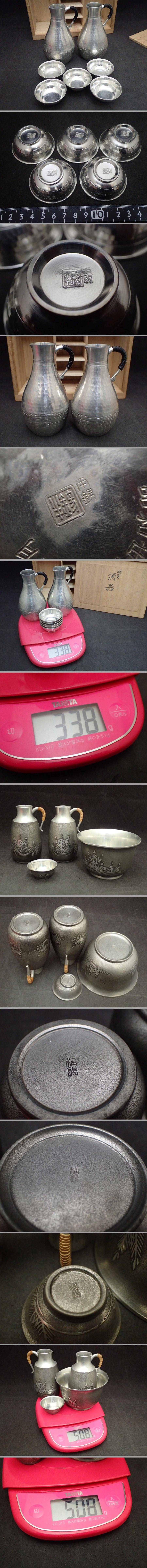 D4☆本錫 錫製 錫 酒器 セット まとめて 約1.2㎏ 徳利 お猪口 ちろり 盃洗 錫半 錫器 金属工芸 (100) 收藏