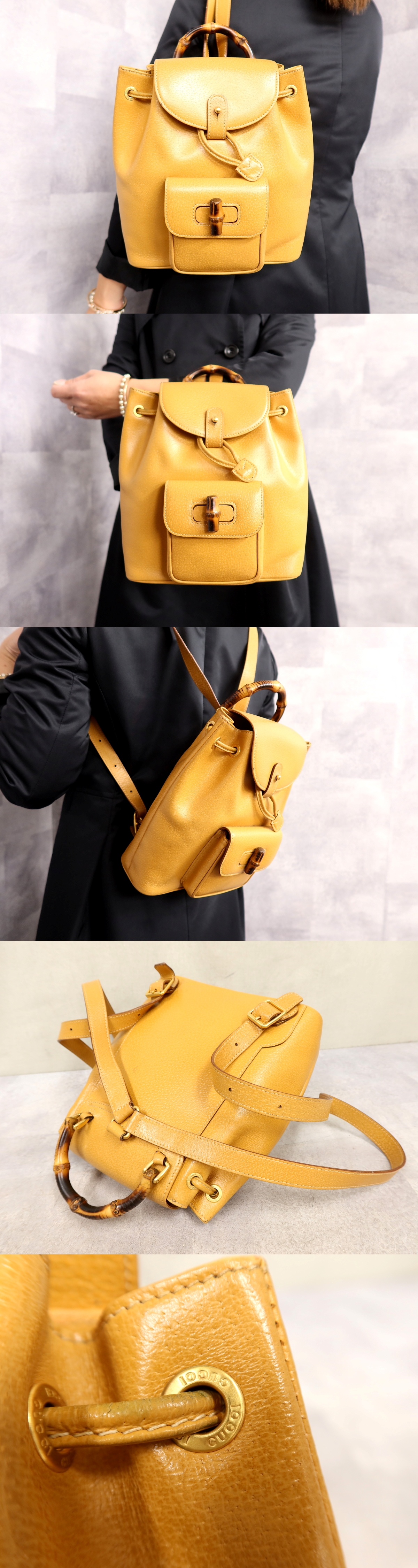 ●超美品●GUCCI グッチ●バンブー●カーフ レザー 本革●リュックサック●ライトブラウン●ゴールド金具●イタリア製●かばん●Js62952 收藏