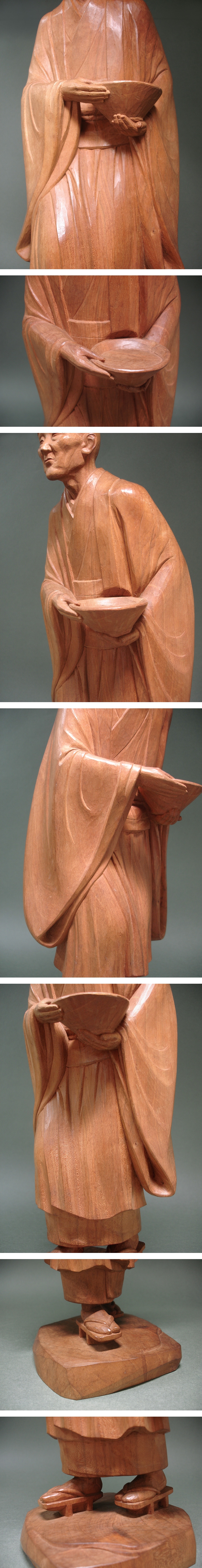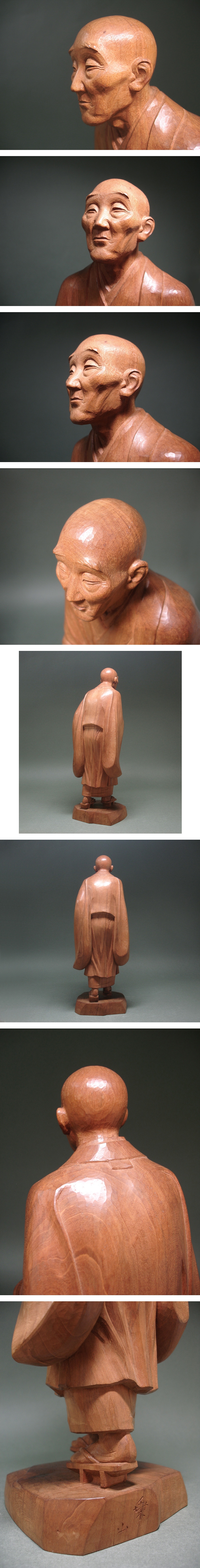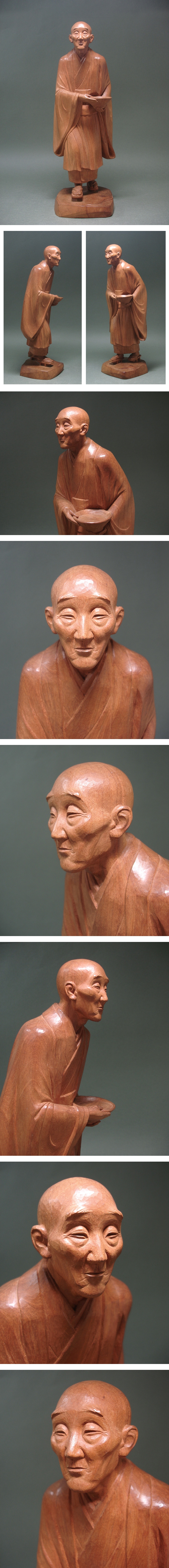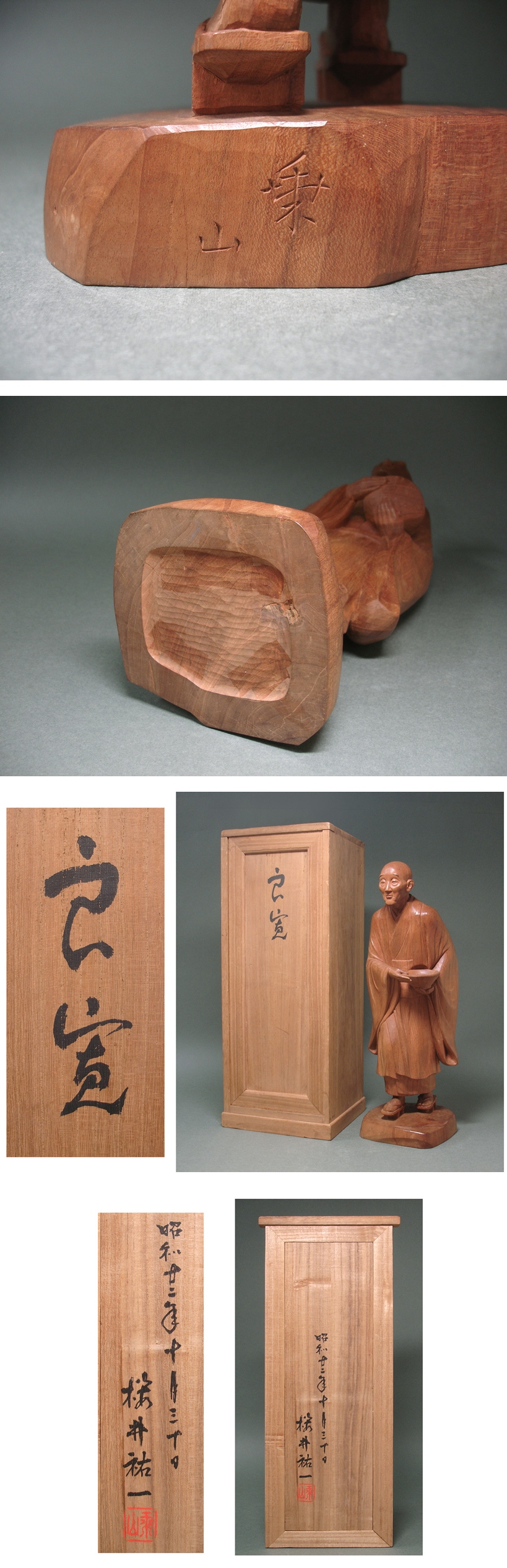 慶應◆平櫛田中門下の巨匠彫刻家【桜井祐一】秀逸作 木彫『良寛』 昭和22年の作 圧巻の写実彫刻! 共箱付 收藏
