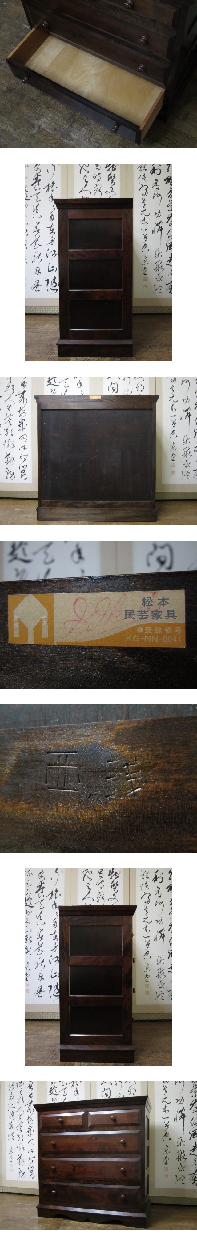 松本民芸家具 ミズメザクラ 無垢材 整理タンス 刻印有/チェスト/引き出し/箪笥/和モダン/伝統工芸/柳宗悦/河井寛次郎/バーナードリーチ 收藏