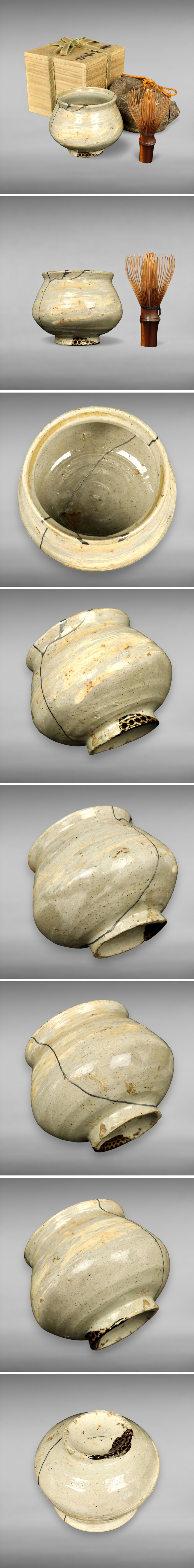 李朝期 刷毛目塩筍小壷 蒔絵直し 銀直し 箱 仕覆 韓国美術 古陶磁 古美術 骨董品 小壺 2009vhfzN 收藏