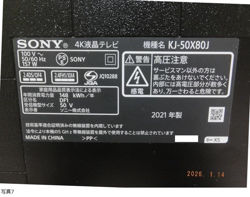 4日間特別セール!SONY 4K液晶テレビ KJ-50X80J 2021年製 ジャンク 修理・部品取り 收藏