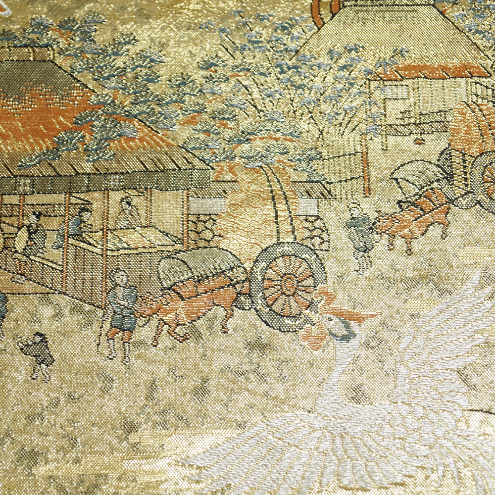 | 品 名 | 袋帯 未仕立て品 東海道五十三次模様 金糸 六通柄 金色系 【袋帯 中古 袋帯 リサイクル 袋帯 フォーマル 袋帯 リサイクル着物 帯 正絹 袋帯 着物 袋帯 中古】 | ||