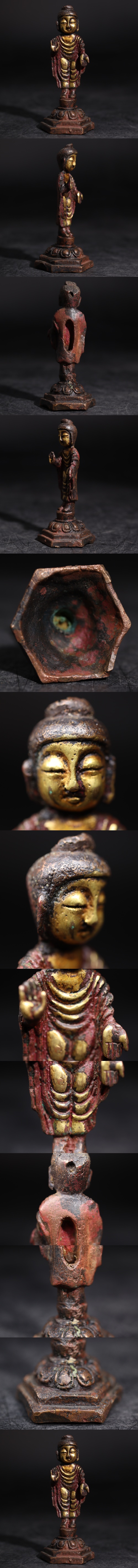 | 時代 古銅 金塗 阿弥陀如来像 豆仏 / 仏教美術 仏像 銅 彫金 煎茶飾 検索: 中国美術 李朝 .G3579 |