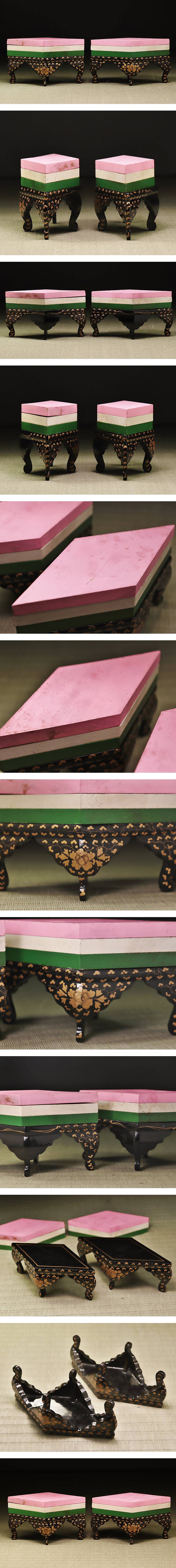 ∇花∇昭和初期 木製雛道具 牡丹唐草蒔絵菱餅台一対 日本人形 節句飾り 有職御殿玩具 收藏