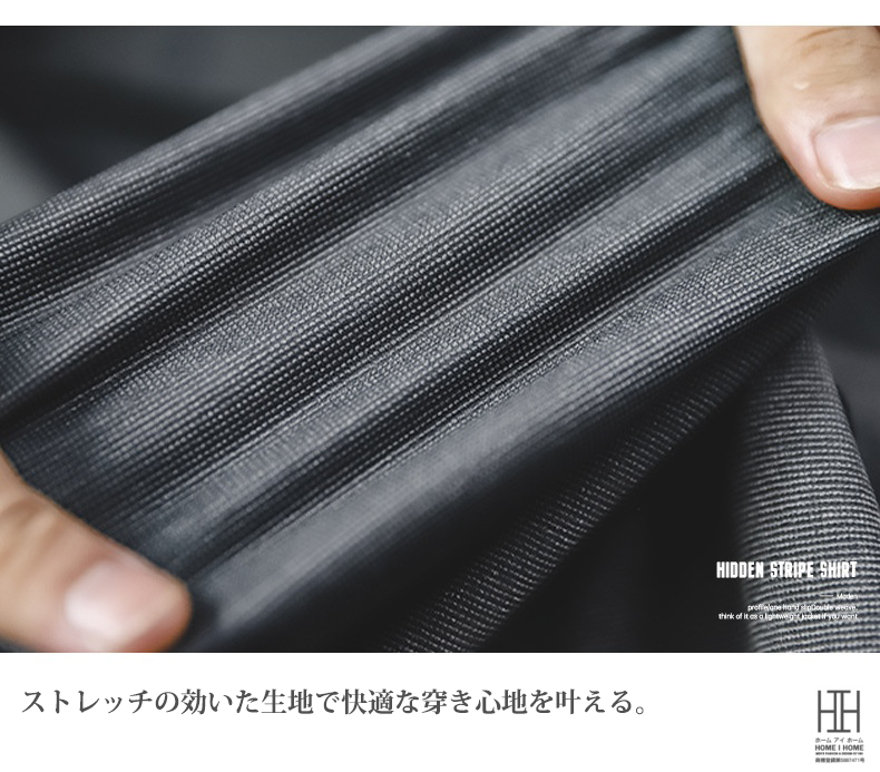 ポリウレタン(伸縮性素材)とナイロンの混紡で、どこかアウトドアライクな雰囲気を持ちつつも、レギュラーカラーシャツというスタンダードな型に落とし込んだことで様々なアイテムと相性の良い一着に仕上がりました。