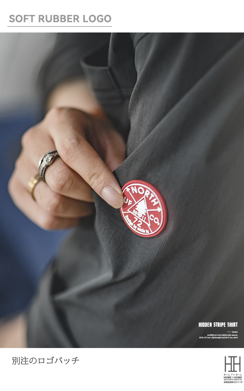 一見スタンダードなレギュラーシャツに見えますが、フロントの比翼デザインや胸の両ポケット、アームのロゴバッチなどが洗練された印象をプラスし、シンプルながらもこだわりを感じられます。