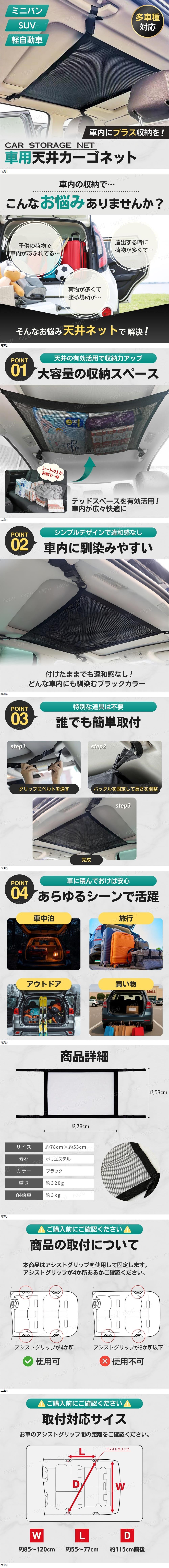 天井収納ネット ルーフ 車内 車載 荷物 トランク ラゲッジ カーゴ メッシュ ベルト 車中泊 SUV ミニバン 軽自動車 車用 軽量 キャリア 釣り 收藏