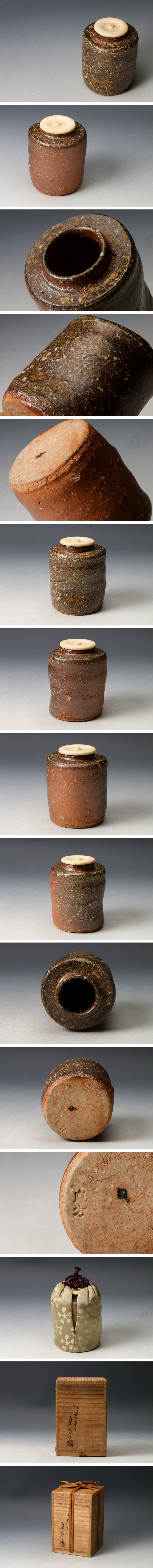 【佳香】四代 上田直方 信楽古来窯 茶入 共箱 仕覆(利休緞子) 茶道具 本物保証 收藏