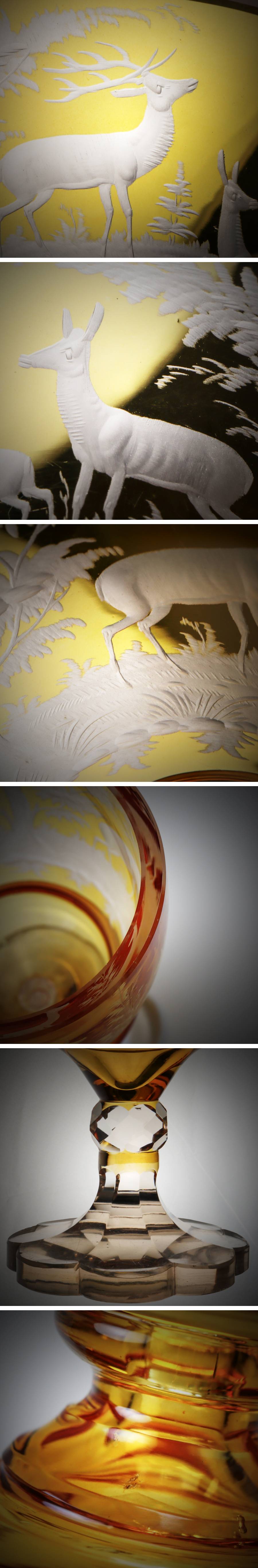NrPd Bohemian Glass エーゲルマン アンバー 森林鹿紋 蓋付ゴブレット ポプリポット 收藏