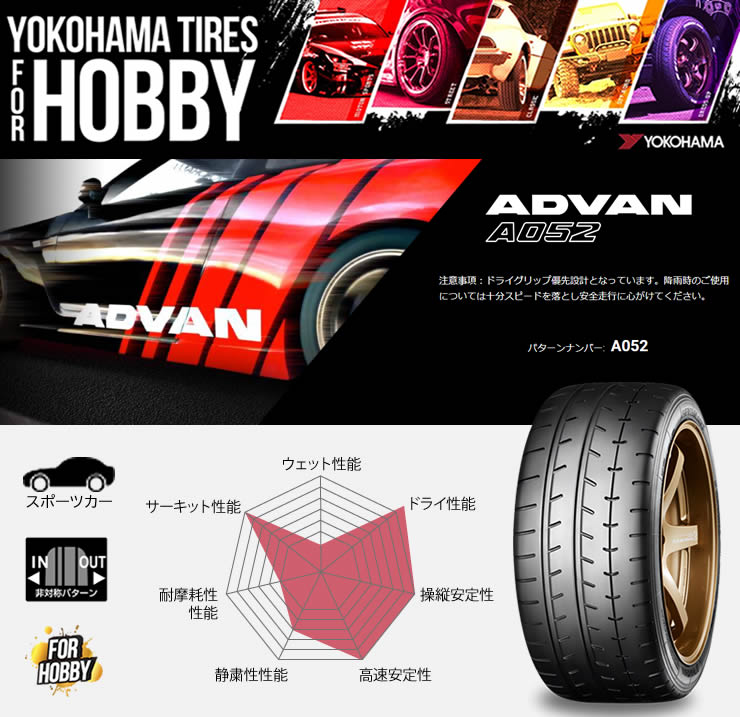 YOKOHAMA ADVAN A052(ヨコハマタイヤ アドバン A052) 205/50R15 89V 1本価格 法人、ショップは送料無料 收藏