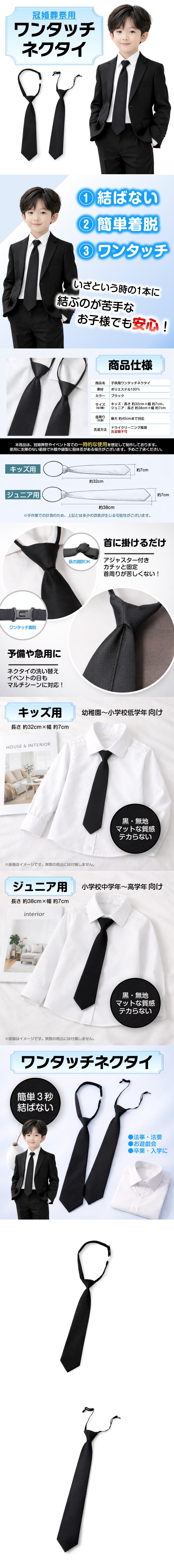 ワンタッチネクタイ 子供 キッズ 結ばない 黒 無地 ネクタイ ワンタッチ 葬儀 法事 冠婚葬祭 葬式 告別式 弔事 法要 フォー 收藏