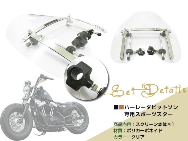 ハーレー Harley Sportster スポーツスター クリア スクリーン ウィンドウ ウィンド ウインド ハンドル径22.2mm~25.4mm 收藏