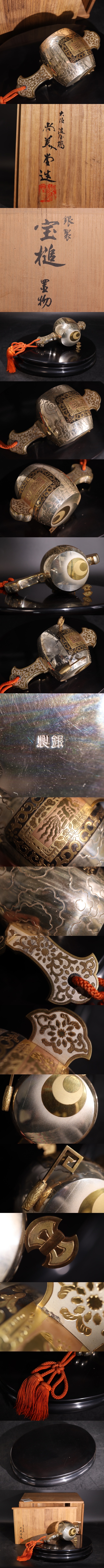 | 銀製 印刻 尚美堂造 「 銀製 宝槌 置物 」 重量約450g 台座 共箱付 / 銀 彫金 金工 煎茶飾 .G4048 |