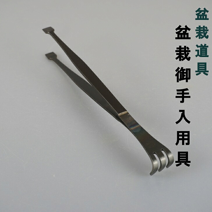 銅製 虫取り熊手付ピンセット 特製本鋼 盆栽道具 全長 約 22.5cm お手入道具 鉢の中の草取り 虫取り 盆栽御手入用具 園芸用品 收藏