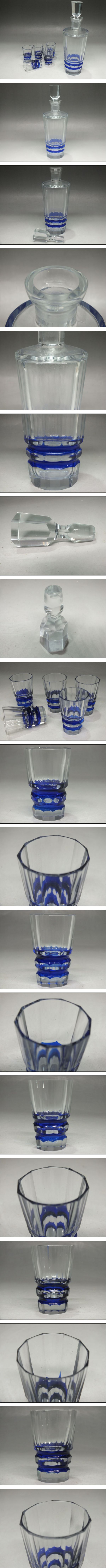 切子硝子 酒瓶 グラスセット ショットグラス 酒器 カットガラス青 昭和レトロ アンティーク | |||
