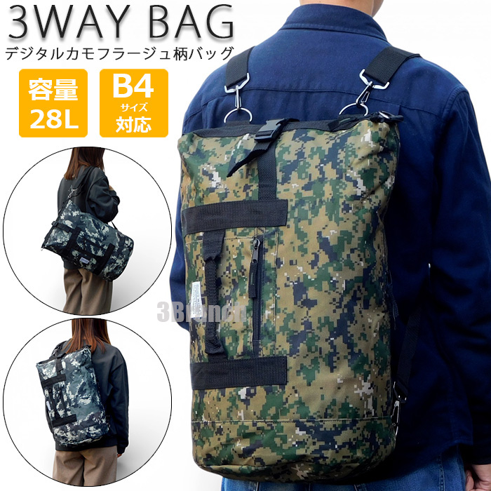 3WAY リュック 迷彩柄 デジタルカモフラージュ 大容量 レディース メンズ リュックサック ショルダーバッグ ボストンバッグ グリーン 收藏