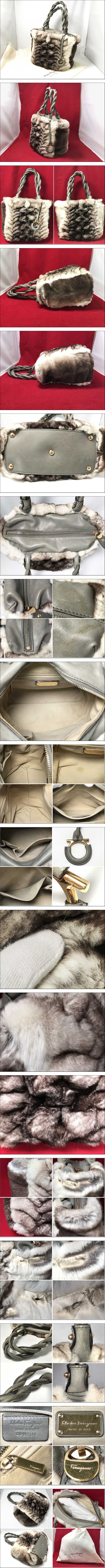 ◆Salvatore Ferragamo サルヴァトーレフェラガモ ファーバッグ GG-21C146 横22×高さ21cm ツイストハンドル 保存袋付き 收藏