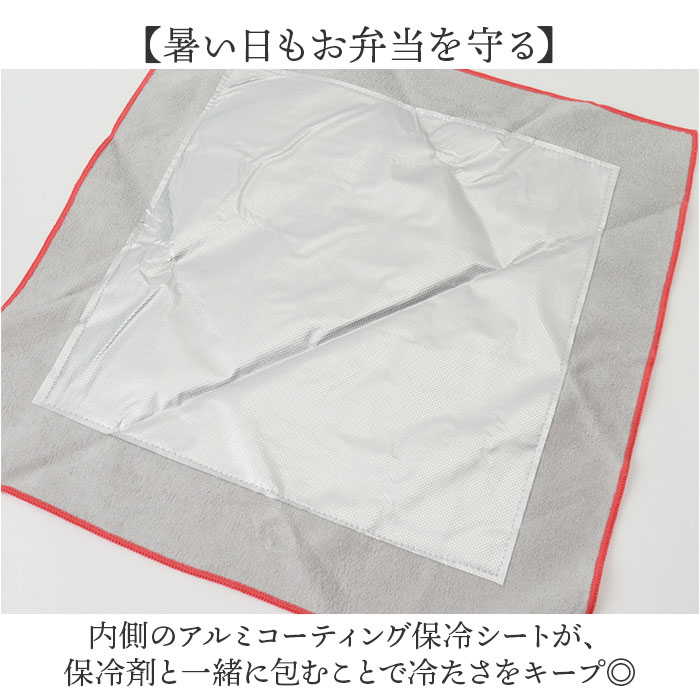 | 商品説明 | ・・【巻くだけ!保冷ふろしき】 ・結ぶ手間なし。くっつく素材でさっと包める保冷シート付き小風呂敷。 ・【くっつく素材で簡単包み】 ・巻くだけでピタっと密着し、結ぶ手間なしでいつでも気軽に使える新感覚ふろしき♪ ・【暑い日もお弁当を守る】 ・内側のアルミコーティング保冷シートが、保冷剤と一緒に包むことで冷たさをキープ◎ ・【水滴もタオル生地が吸収】 ・冷えたペットボトルや折りたたみ傘の水滴をタオル生地が吸収し、カバンを濡れから守る〇 ・【ポーチ代わりにも活躍する】 ・タブレットや充電器、コスメなどの小物をマルチに包め、ポーチ代わりに大活躍! |
