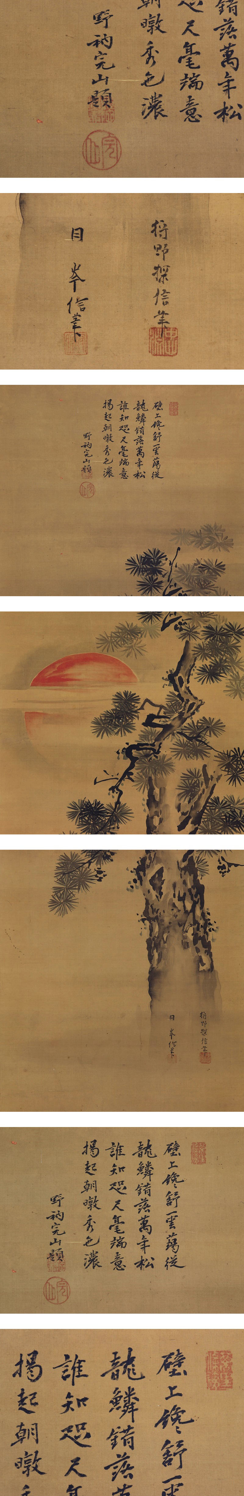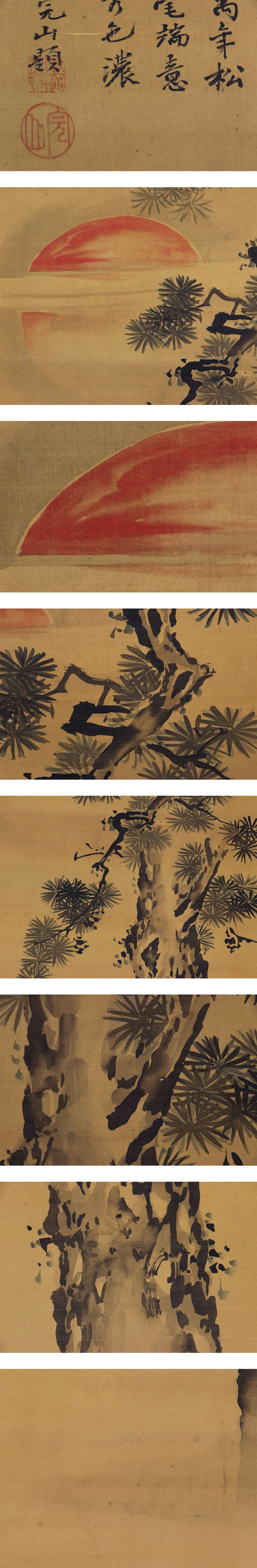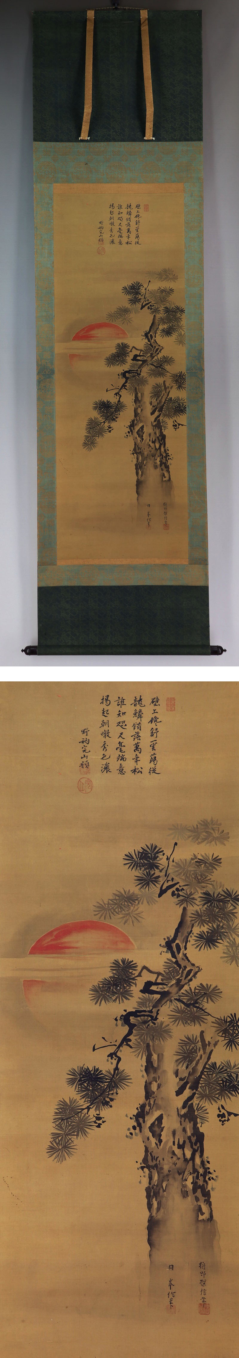 №2008082【真作】狩野探信【日の出松】◆絹本◆合箱◆掛軸 | |