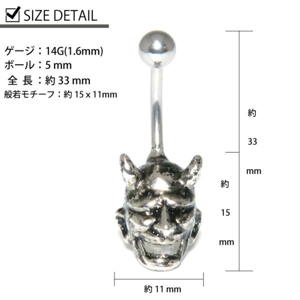 ヘソピアス バナナバーベル調 般若フェース 14G(1.6ミリ) ボディピアス サージカルステンレス 鬼 クール 和風 デザイン ロブ 14ゲージ┃ 收藏
