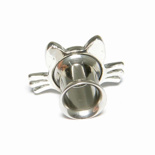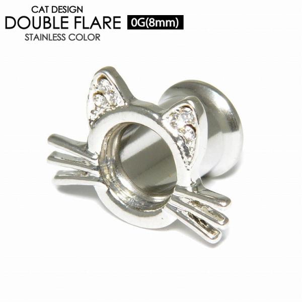 ボディピアス 0GA (8mm) CAT ダブルフレア キャット 猫 デザイン アイレット サージカルステンレス ホールトゥピアス 0ゲージ 8ミリ ┃ 收藏