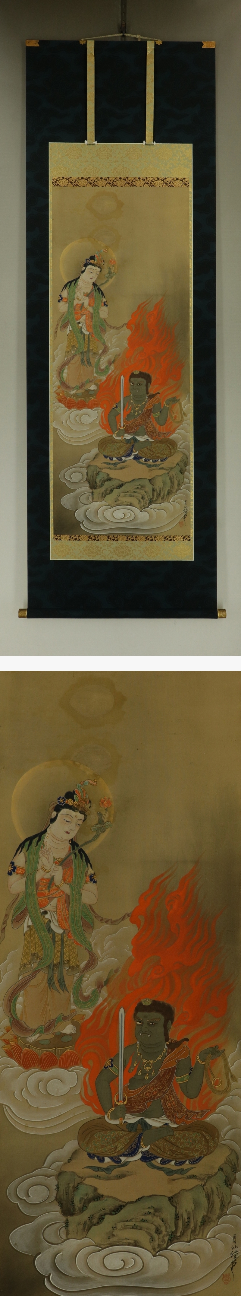 №1804005c【肉筆】古仏画【不動に観音】◆絹本◆合箱◆改装済掛軸 | |