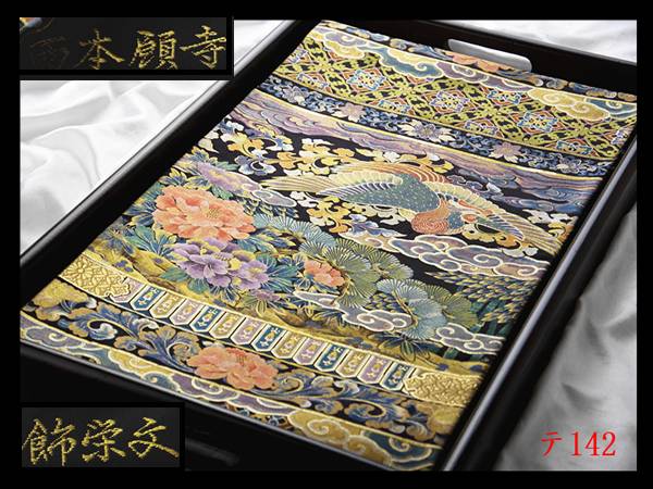 蔵【テ142】西陣逸品 振袖可 西本願寺 飾栄文 藍墨茶色地 正絹純金糸六通高級美術袋帯 ◇検◇簪着物名古屋帯和装小物帯締め 收藏