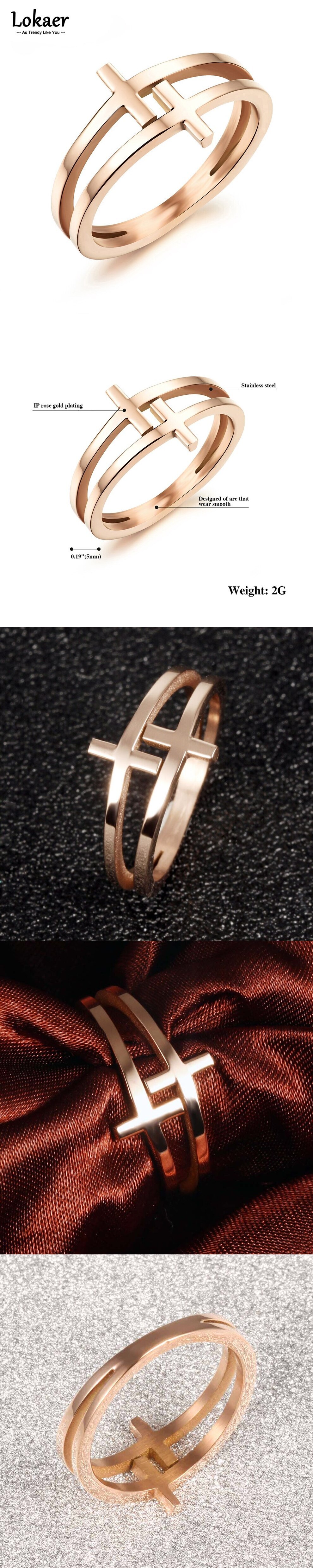 指輪 リング ステンレス ゴールド クロス 十字架 レディース 女性 ローズ カラー ダブル レイヤー デザイン 指 フィンガー トレンド 收藏