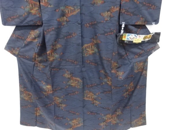 ys7274119; 宗sou 逆雲取に御所車・屋敷模様織出し本場泥大島紬着物(5マルキ)【リサイクル】【着】 收藏