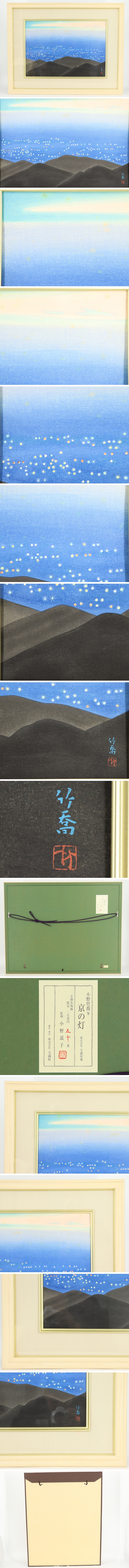 【蔵】手摺木版画 文化勲章日本画家 小野竹喬 「京の灯」50/200 小野道子監修 箱付 本物保証 H-S2074A 收藏