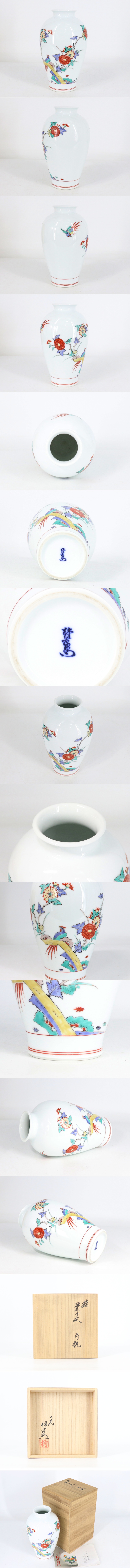 【蔵】有田焼 人間国宝 十四代 酒井田柿右衛門作 錦菊鳥文花瓶 花瓶 花入 花器 栞 共箱 本物保証 Y3311M 收藏