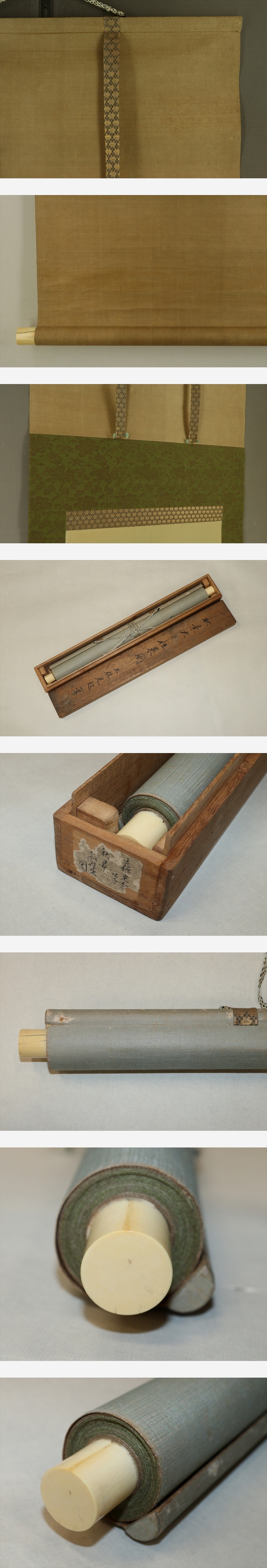 土佐光起 とさ-みつおき(1617-1691) 江戸前期の土佐派の画家。和泉堺生。光則の子。幼名は藤満。 絵所預となり光元以来中絶していた土佐家の絵所を再興する。 光長・光信と併せて土佐三筆と称される。元禄4年(1691)歿、75才。 本紙は、染み、ヤケがあります。 表装は、染み、汚れ、細かな折れ、皺、虫食、破れ、ほつれ、 軸先に汚れと傷み、箱に破損があります。 【サイズ】 作品 横約36cm×縦約106cm 表装 横約49cm×縦約194cm |