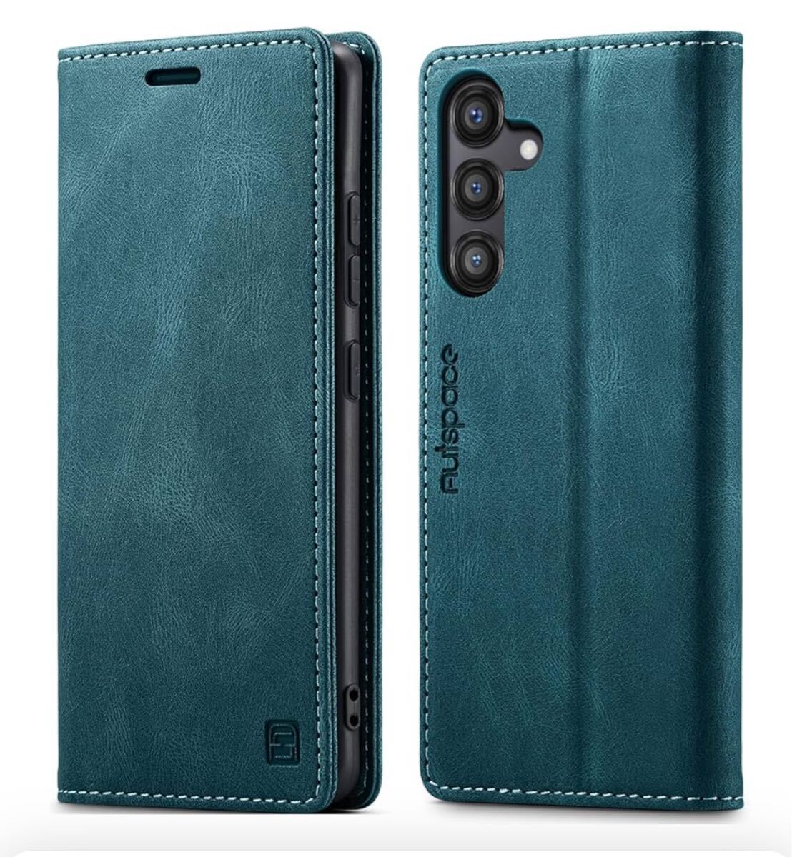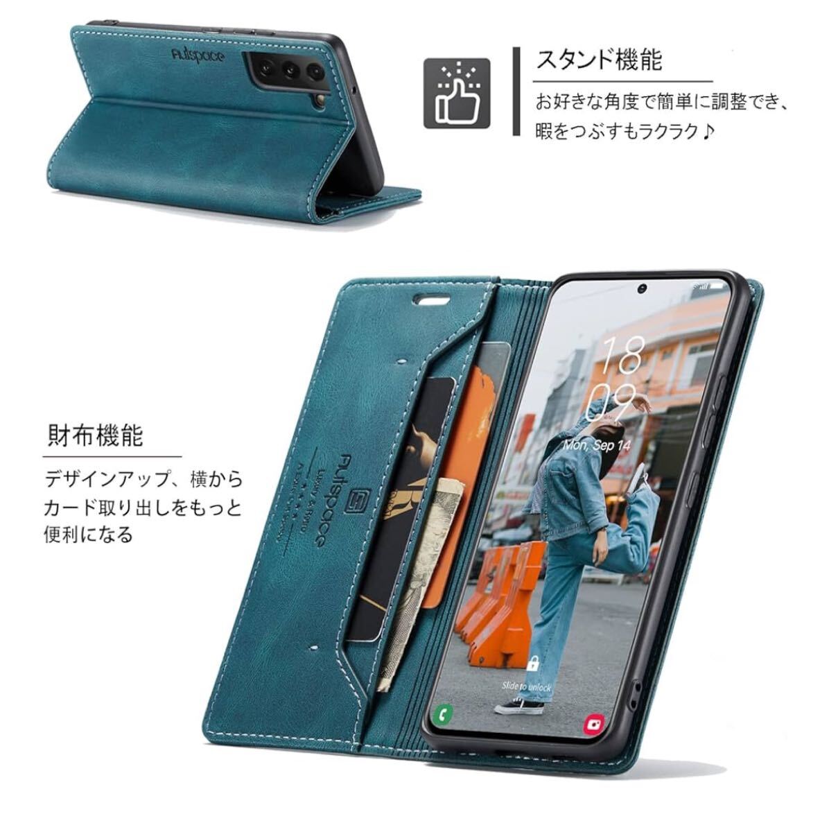 Galaxy A24ケース 手帳型 磁気防止 肌感レザー 携帯カバー 軽量 内蔵マグネットスタンド機能 ターコイズ 收藏