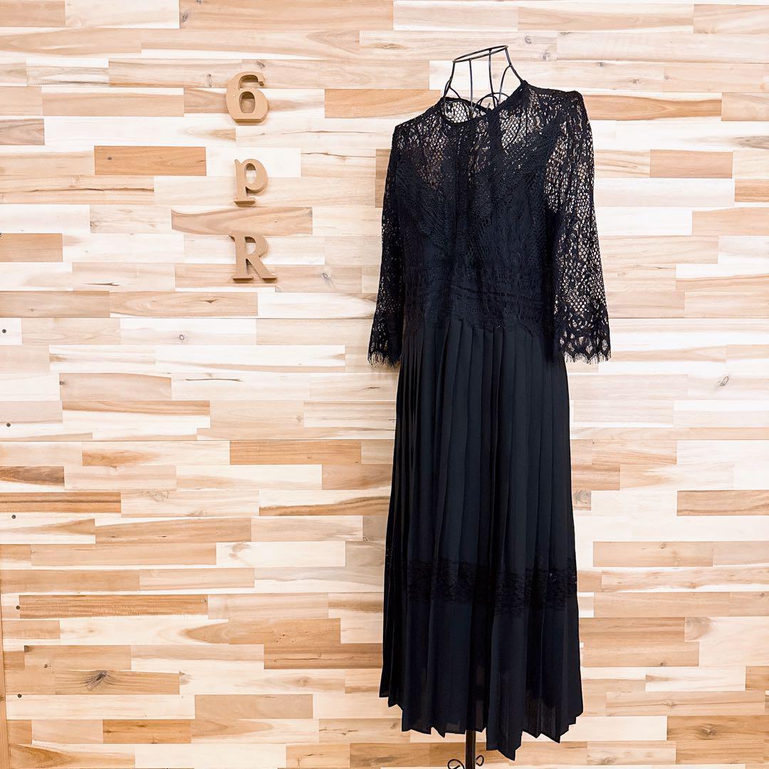 繊細に編まれたレースが素肌を柔らかく透かし、深みのあるブラックが洗練された雰囲気をプラス。ウエストから下に広がるプリーツスカートが動きに合わせて美しく揺れ、縦のラインを強調してすっきりとした印象のZARAのワンピースです。同じデザインを数多く作らないブランドのため、出回る数が少ないお品です。※LGスタイラーにて除菌リフレッシュ・スチームクリーニング済みです。